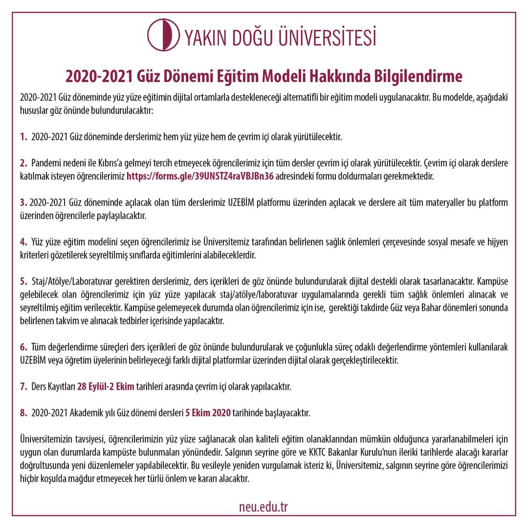 2020-2020 Güz Dönemi Eğitim Modeli Hakkında Bilgilendirme