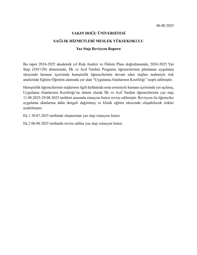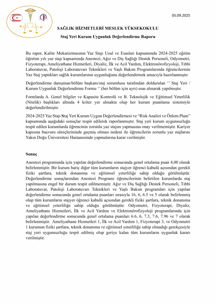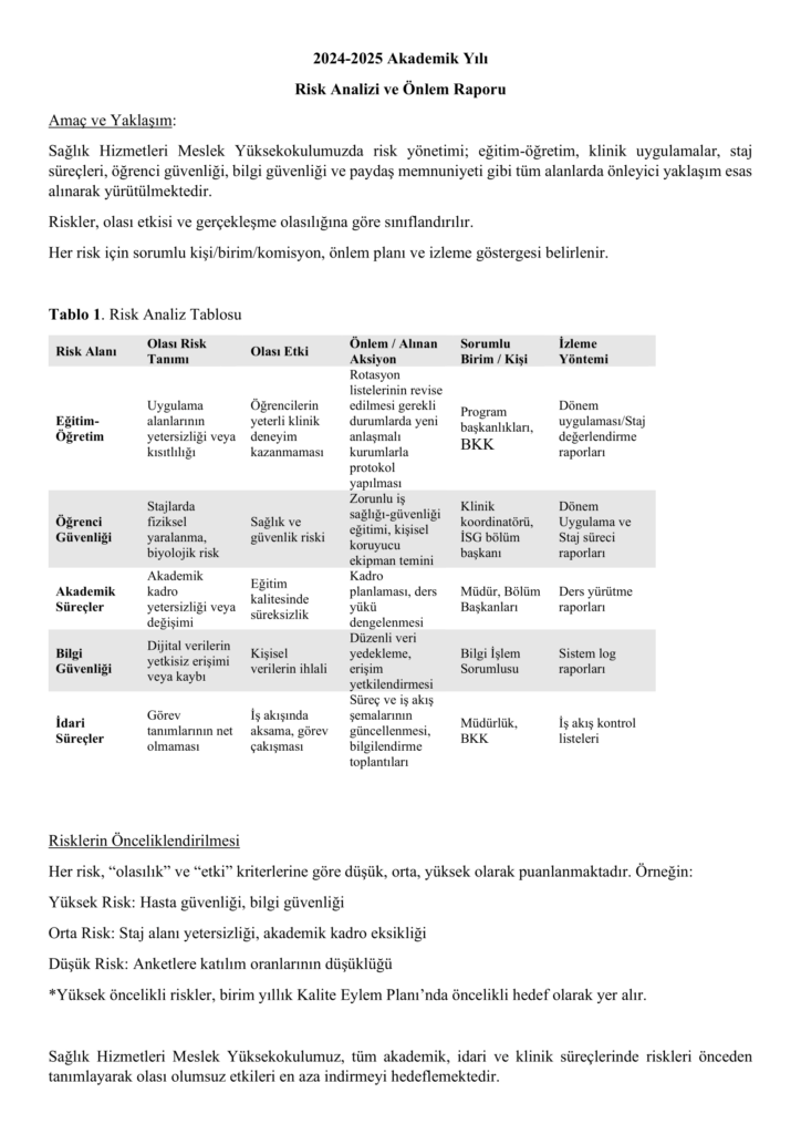 Birim İç Değerlendirme Raporu Öz Değerlendirme Raporu ArGe Raporu Faaliyet Raporu Mezun Takip Raporları MEZUN-MEMNUNIYET-ANKETI-RAPORU-NITEL Performans Değerlendirme Raporları Performans Değerlendirme Raporu 2024-2025 Akademik Yılı Risk Analizi ve Önlem Raporu Risk Analizi ve Önlem Raporu 2024-2025